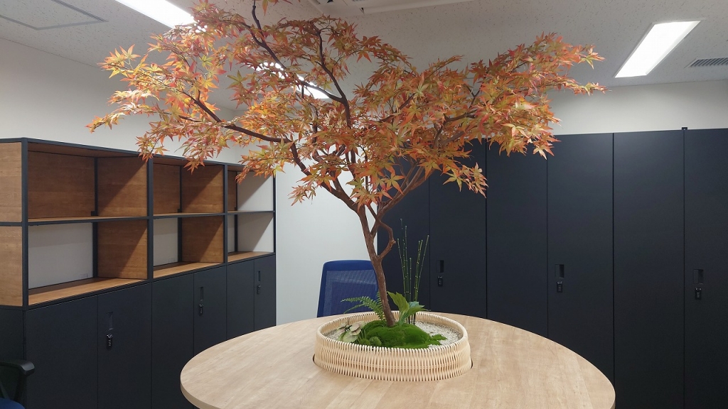 『フェイクグリーンにてモミジなどを皆が集まるテーブルに植えるのはいかがでしょうか?』