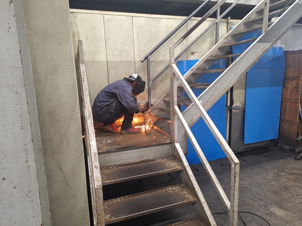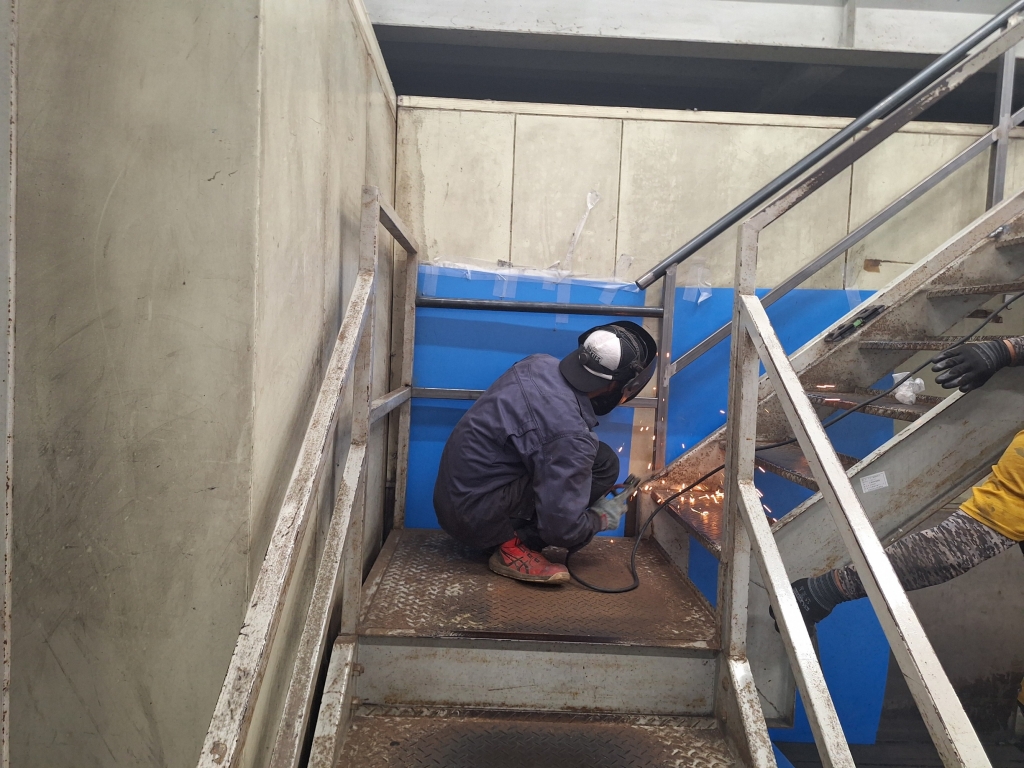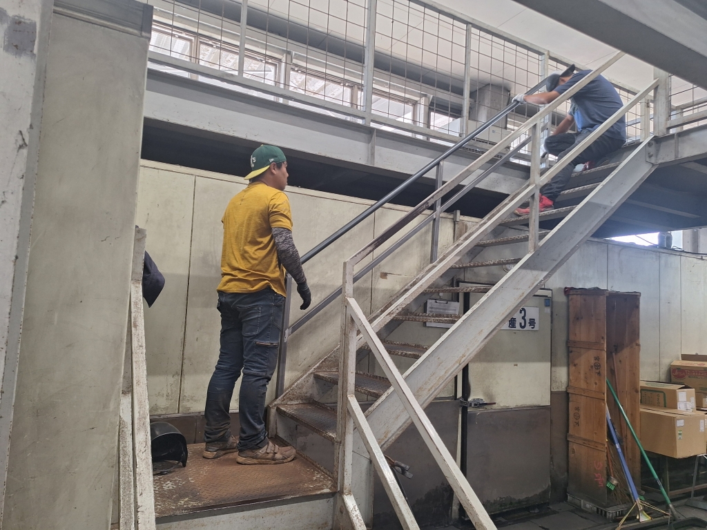 本日の作業は溶接して取り付けた手摺に錆止めを塗って終了となります。
